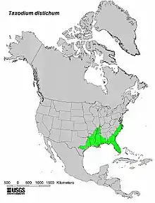 - ↑ USDA, NRCS (n.d.). "Taxodium distichum". The PLANTS Database (plants.usda.gov). Greensboro, North Carolina: National Plant Data Team. Retrieved 8 December 2015.