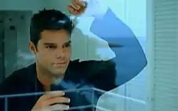 The first accompanying music video was directed by Argentine director Gustavo Garzón and filmed in Los Angeles, California. The visual was aired in 1995 and won the award for Video of the Year at the 8th Premio Lo Nuestro.[34] The second video was shot in August 1997 in France and was directed by Christophe Gstalder.[9] It depicts Martin chasing after a woman and watching her from the window with binoculars.[35] The video was uploaded on the singer's YouTube channel on October 3, 2009.[36] Cristal Mesa from mitú named the visual Martin's fourth-best music video on her 2018 list, calling its sentiment "so sweet".[35]