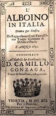 - L' Alboino in Italia by Carlo Francesco Pollarolo (1691)