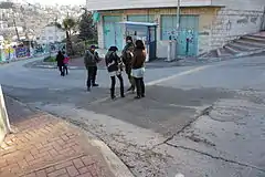 In 2005, violence against Palestinians in Hebron most frequently originated with the settlement at Tel Rumeida. The Abu Haikel family is reported to be harassed many times.[61] Of the original 500 Palestinian families resident there, only 50 had remained after what Gideon Levy called a 'reign of terror'.[62][63] Palestinian cars are torched.[64] Long curfews, restrictions on Palestinian movements in the area, and the difficulty of sending children to school like the local Qurtuba (Cordoba) elementary school whose main entrance was sealed with razor wire by the IDF in 2002 and whose students are subject to settler stoning,[65] have, according to one testimony, forced residents in the Palestinian neighbourhood to abandon their homes, and a grocery business and a small hospital to close. Palestinian vehicles are forbidden on Tel Rumeida's streets, and Arab residents can only move in the area on foot.[10] Visits by the International Committee of the Red Cross to check the conditions of Palestinian residents are met by vandalism of vehicles: the flags are stolen, and the emblems on cars damaged since apparently the symbol of the Christian cross is considered 'offensive' to Jewish settlers in the area.[66] B'tselem has a project to provide Palestinians with videos to capture violence against them, and one of the best known videos in the series[67] deals with the harassment Palestinian residents of Tel Rumeida are subject to.[68] According to David Dean Shulman, Palestinian residents have opened a Center for Sumud and Challenge, where the virtue of non-violent resistance and steadfast perseverance (sumud) in the face of harassment is advocated.[69] Situated close to Admot Yishai, the centre, run by Youth Against Settlements (YAS), was subject to an arson attempt in 2013.[57]
