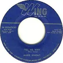 "Tell Me Why" is a popular song, written by Titus Turner in 1956.[1] It is a slow, strong rhythm and blues ballad, and has a melody reminiscent of "Just a Closer Walk with Thee". The first hit version was by Marie Knight, a black R&B singer, on the Mercury's subsidiary label, Wing.[1] It was a local hit in New Orleans and Texas.