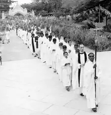 The Diocese of Dornakal was founded on 29 December 1912, when the Rev. Vedanaygam Samuel Azariah was consecrated its first Bishop in St. Paul's Cathedral, Calcutta. The real significance of the ceremony lay in the fact that Bishop Azariah was the first Indian to be consecrated a Bishop of the Anglican Communion.[24] When it was first formed in 1912, the Diocese of Dornakal was quite a small diocese in the south-east corner of the Nizam's Dominions. A few years later it was enlarged by the addition of the District of Dummagudem, in which the Church Mission Society was working. Then came a Resolution of the Episcopal Synod in the year 1920, which transformed this comparatively small diocese into a diocese which has now probably as large, if not a larger number of Anglican Indian Christians than any other in India. By this resolution all the Mission Districts of both the Church Missionary Society and the Society for the Propagation of the Gospel in the Telugu country, were placed under the Episcopal jurisdiction of the Bishop of Dornakal. This means that the present Diocese of Dornakal includes a large portion of the Krishna district, together with the part of the Godavari district named Dummagudem; parts of the Kurnool and Cuddapah districts to the south occupied by the Society for the Propagation of the Gospel; also the areas in the Hyderabad State occupied by the Indian Missionary Society of Tinnevelly, the Singareni Mission, the Khammamett Mission (formerly under the Church Missionary Society), and the then recently formed Dornakal Diocesan Mission.[24]