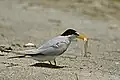 Is the smallest of the American terns and is found nesting on sandy shores of the southern parts of the United States. Small fish are the main staple in their diet.[6] |