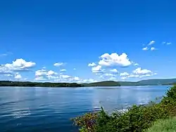 The Tennessee River, the largest tributary of the Ohio River, is a 652 miles (1,049 km) long river in the southeastern United States. The river drains the Tennessee Valley watershed, and is located within four states: Tennessee, Alabama, Mississippi, and Kentucky. In East Tennessee, the river runs through Chattanooga, whose city limits touch the Tennessee–Georgia border in some places, and runs into Alabama south of Nickajack Dam less than one mile from the tripoint where Tennessee, Georgia, and Alabama meet. The river in Tennessee reaches as close as 200 feet (61 m) from the Georgia state line in Marion County.[1]
