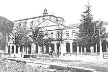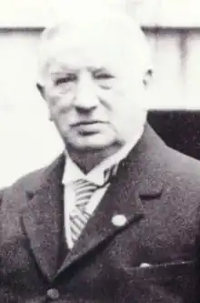 In 1905 Liga Foral appointed Arana as their candidate to the senate, from the pool reserved for provincial self-governments.[52] There were no counter-candidates fielded and in 1905 Diputación Provincial de Guipúscoa elected him to the upper chamber.[53] At the time Carlist structures viewed Liga as an organization dominated by local conservative caciques. Carlos VII denounced it as incompatible with Traditionalism.[54] During his electoral campaign Arana published an opened letter, titled A los carlistas guipuzcoanos; he claimed that objectives of the League overlap with the Carlist ones and defended his access to the alliance.[55] The claimant grumbled that Arana turned Traditionalism on its head, but having one more representative in the senate, he preferred not to disauthorise him. The liberal press cheered upon perceived "descomposición del carlismo", but the Basque regional jefe Tirso de Olazabal limited himself to publishing an ambiguous letter.[56] Contemporary scholar presents the episode as a good demonstration of erratic Carlist position versus Basque autonomous demands.[57]