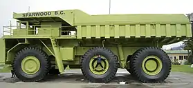 In late 1978, the Titan was sent to Kaiser Steel's mine at Sparwood, British Columbia, Canada. The mine was acquired from Kaiser Steel by B.C. Resources in 1980.[9] When the mine was subsequently acquired by Westar Mining in 1983, the Titan was repainted from its original Terex lime green livery to Westar Mining's blue and yellow livery. Shortly after, Westar Mining purchased the Titan from General Motors for US$200,000 ($590,000 today) and $1 million of spare parts ($3 million today). During Westar Mining's ownership, the Titan had an uptime rate of more than 70% and regularly hauled loads exceeding 350 short tons (320 t). Westar Mining retired the Titan from service in 1991.
