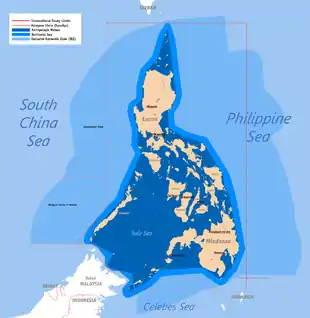 - The Philippines claims a rectangle, defined by coordinates; the total claim extends beyond 12 nautical miles.