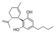 Similarly to THC, it has 7 double bond isomers and 30 stereoisomers.[6] The Δ8 isomer is known as a synthetic cannabinoid under the code name JWH-130,[7] and the ring-opened analogue cannibidibutol (CBDB) is also known.[8] THC-Butyl can be synthesized from 4-Butylresorcinol.