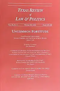 The Texas Review of Law & Politics is a legal publication whose mission is to publish "thoughtful and intellectually rigorous conservative articles--articles that traditional law reviews often fail to publish--that can serve as blueprints for constructive legal reform."[1] Its primary focus is the discussion and debate of contemporary social issues such as constitutional history, affirmative action, crime, federalism, and religious issues.