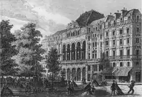 In 1862 during Haussmann's modernization of Paris, the Théâtre de la Gaîté of the boulevard du Temple was relocated to the rue Papin across from the Square des Arts et Métiers.[3][4] The new theatre, built in an Italian style to designs of the architects Jacques-Ignace Hittorff and Alphonse Cusin, opened on 3 September.[5][6]