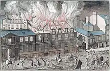 The Théâtre du Palais-Royal (or Grande Salle du Palais-Royal) on the rue Saint-Honoré in Paris was a theatre in the east wing of the Palais-Royal, which opened on 14 January 1641 with a performance of Jean Desmarets' tragicomedy Mirame. The theatre was used by the troupe of Molière from 1660 to 1673 and as an opera house by the Académie Royale de Musique from 1673 to 1763, when it was destroyed by fire.[1] It was rebuilt and reopened in 1770, but again was destroyed by fire in 1781 and not rebuilt.[2]