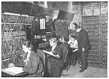The origin of the théâtrophone can be traced to a telephonic transmission system demonstrated by Clément Ader at the 1881 International Exposition of Electricity in Paris. The system was inaugurated by the French President Jules Grévy, and allowed broadcasting of concerts or plays. Ader had arranged 80 telephone transmitters across the front of a stage to create a form of binaural stereophonic sound.[1] It was the first two-channel audio system, and consisted of a series of telephone transmitters connected from the stage of the Paris Opera to a suite of rooms at the Paris Electrical Exhibition, where the visitors could hear Comédie-Française and opera performances in stereo using two headphones; the Opera was located more than two kilometers away from the venue.[2] In a note dated 11 November 1881, Victor Hugo describes his first experience of théâtrophone as pleasant.[3][4]