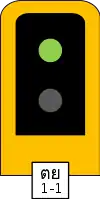 Distant signal use to indicate next main signal is red or not. This signal consists of 2 color light signals (yellow and green).