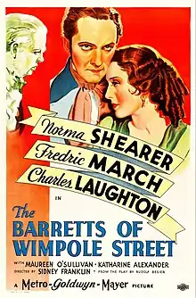The Barretts of Wimpole Street is a 1934 American romantic drama film directed by Sidney Franklin based on the 1930 play of the same title by Rudolf Besier. It depicts the real-life romance between poets Elizabeth Barrett (Norma Shearer) and Robert Browning (Fredric March), despite the opposition of her abusive father Edward Moulton-Barrett (Charles Laughton). The film was nominated for the Academy Award for Best Picture and Shearer was nominated for the Academy Award for Best Actress. It was written by Ernest Vajda, Claudine West, and Donald Ogden Stewart, from the successful 1930 play The Barretts of Wimpole Street by Rudolf Besier, and starring Katharine Cornell.