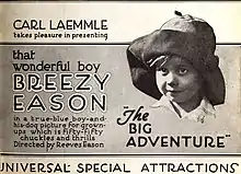 The Big Adventure is a 1921 American silent adventure film directed by B. Reeves Eason and starring B. Reeves Eason Jr., Lee Shumway and Gertrude Olmstead.[1]