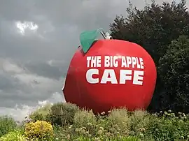 The Big Apple is a large statue of an apple in Waitomo, New Zealand. It is 7.5 metres (25 ft) tall, and located between Ōtorohanga and Te Kūiti on State Highway 3.[1] It also includes a restaurant, café, and conference facility. It is near a 1,920-square-metre (20,700 sq ft) orchard,[1] and has four dining areas with a capacity of 500 people. As of 2009, it attracted tourists in numbers of "thousands a week."[2] It is one of New Zealand's big things.[3]