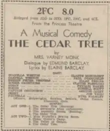 5. 1 2 Australasian Radio Relay League., "He Wrote the CEDAR TREE A New Australian Music-Comedy", The Wireless Weekly: The Hundred Per Cent Australian Radio Journal, Sydney: Wireless Press (Vol. 24 No. 26 (December 28, 1934)), nla.obj-730667057, retrieved 23 October 2023 via Trove