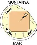 According to the municipal council, the winning project was a proposal by Antoni Rovira based on a circular mesh that enveloped the walled city and grew radially, harmoniously integrating the surrounding villages. It was presented with the slogan: "Le tracé d'une ville est oeuvre du temps, plutôt que d'architecte".[20] The phrase is originally from Léonce Reynaud, an architectural reference of Rovira. It was structured in three areas where the different sectors of the population were combined with social activities with a logic of neighborhoods and hierarchy of space and public services. Based on a proposal to replace the wall, a mesh of rectangular blocks with a central courtyard and a height of 19 meters was deployed. A few main streets were the junction between blocks of the hippodamus structure to readjust the square profile to the semicircle that surrounded the city. Rovira proposes his solution with a clear center located in the Plaza de Cataluña, while Cerdá moved the centrality to the Plaza de la Glorias. The plan provided a solution for the Plaza de Cataluña, which was not foreseen in the Cerdá plan.[19]