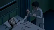 Fearing Rena's safety, Conan, along with Jodie and other Federal Bureau of Investigation (FBI) members, Andre Camel, James Black, and Shuichi Akai, make their way to investigate a fake patient sent to the hospital by the Organization. They are able to identify a man named Rikumichi Kusuda, faking a neck sprain, however, he flees by car, then later commits suicide by self-afflicted gunshot to avoid arrest. Afterwards, Eisuke enters Rena's hospital room, where he angrily attempts to stab her with scissors, before Rena stops grabs them. Conan appears to tells Eisuke that Rena is in fact his real sister, and that her real name is Hidemi Hondo, who is also a CIA agent. In the past, Ethan devised a scenario for his real daughter, Hidemi, as Kir, to murder him after their identities as CIA agents were known by the Organization. Conan, having learned that Eisuke had leukemia as a child, explains their blood relation, due to Hidemi's bone marrow being transplanted to Eisuke, to help with his condition, changing his blood type from O to AB in the process.