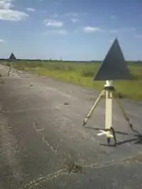 Radio antenna undergoing testing in the compound