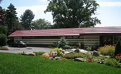 The Crimson Beech (also known as the Cass House) is a house designed by Frank Lloyd Wright located in the Lighthouse Hill neighborhood of the New York City borough of Staten Island. Its original owners, Catherine and William Cass, had it manufactured by Marshall Erdman in kit form in Madison, Wisconsin and shipped to Staten Island where it was erected in 1959.[2] It is the only residence designed by Wright in New York City and one of eleven Marshall Erdman Prefab Houses that were built.[3] The particular model is known as the Prefab #1.