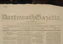 One of the first issues of the Dartmouth Gazette