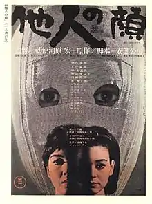 The Face of Another (Japanese: 他人の顔, Hepburn: Tanín no Kao) is a 1966 Japanese New Wave film directed by Hiroshi Teshigahara and based on the 1964 novel of the same name written by Kōbō Abe.[2][3] The story follows engineer Okuyama, who suffers severe facial burns in a work-related accident and is given a new face in the form of a lifelike mask.