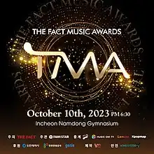 The Fact Music Awards (Korean: 더팩트 뮤직 어워즈; abbreviated as TMA) is an awards ceremony hosted by The Fact and organized by Fan N Star that recognizes major contributors to the Hallyu wave.[1] Established in 2019, The Fact Music Awards determines its winners through objective data from Gaon, a panel of judges, and the support and participation scores of fans at home and abroad.[2]