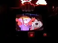 Unlike most traditional simulator rides (such as Star Tours or Body Wars) the entire ride takes place inside an auditorium, with the audience in chairs that move. Non-moving chairs were also available for those who only wanted to watch the film. The ride vehicles for Universal Studios Florida were created by Ride Trade.[3] The vehicles had 4 degrees of freedom and had 8 seats, the motion was programmed by Trey Stokes and Dave Philipsen, with software designed by Dave Philipsen.[4] Yogi and Boo Boo's Hanna-Barbera rocket which guests would ride in was previously featured on Yogi's Treasure Hunt and Joe Barbera and Bill Hanna's computer from the pre-show would later make an appearance on Wake, Rattle, and Roll.