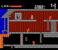 The Goonies (Japanese: グーニーズ, Hepburn: Gūnīzu) is a 1986 platform game based on the film of the same name produced by Konami for the Family Computer. Konami also developed a completely different version for the MSX in Japan. First released on cartridge, it was later re-released in Disk System format in 1988. Although the game was never sold in retail in North America, Nintendo published an arcade port in North America for the VS. System (a coin-operated platform which runs on the same hardware as the NES) under the title Vs. The Goonies and it was also available as a PlayChoice-10 title in the region.[2] A sequel was released titled The Goonies II, which saw a worldwide retail release.