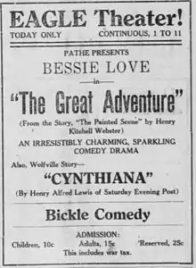The Great Adventure, also known as Her Great Adventure[8] and Spring of the Year,[9] is a 1918 American silent comedy-drama[10] film directed by Alice Guy-Blaché, and starring Bessie Love.