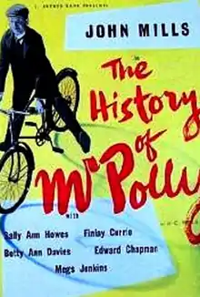 The History of Mr. Polly is a 1949 British film based on the 1910 comic novel The History of Mr. Polly by H.G. Wells.[2] It was directed by Anthony Pelissier (who is also credited with the script) and stars John Mills, Betty Ann Davies, Megs Jenkins, Moore Marriott and Finlay Currie.[3] It was the first adaptation of one of Wells's works to be produced after his death in 1946.