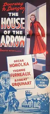 The House of the Arrow is a 1953 British mystery film directed by Michael Anderson and starring Oskar Homolka, Robert Urquhart and Yvonne Furneaux. It is the fourth film version of the 1924 novel The House of the Arrow by A. E. W. Mason, featuring his French detective Inspector Hanaud.[1]