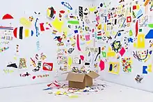 Result of a performance at the Livart Art Gallery in Montreal, in which Hervé Tullet holed, tore, folded, turned and assembled pieces, the first Ideal Exhibition was set up.[4] This exhibition, composed of the creations made during the art residency, inaugurates the movement of The Ideal Exhibition, which invites everyone to create their own pieces.[5]