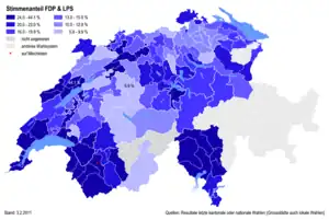- d.^ In Vaud the FDP and Liberals (LP) were not merged in 2011, numbers are for the FDP party.