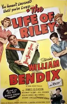 The Life of Riley is a 1949 American comedy film directed by Irving Brecher and starring William Bendix, Rosemary DeCamp and James Gleason.[2] It was based on the popular radio show of the same title.[3]