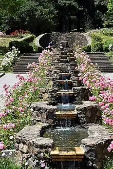 Cascade in the Morcom Amphitheater of Roses, Oakland, California. The garden was completed by the New Deal's Federal Emergency Relief Administration in 1934-1935.