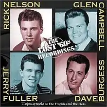 The Lost '60s Recordings contains tracks from singles released by The Trophies and The Fleas in the early sixties for Challenge Records, plus solo tracks by the individual band members. Those bandmembers were Ricky Nelson, Jerry Fuller, Glen Campbell and Dave Burgess.