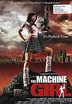 The Machine Girl (片腕マシンガール, Kataude Mashin Gāru, "One-armed Machine Girl") is a 2008 Japanese action comedy film written and directed by Noboru Iguchi, and starring Minase Yashiro, Asami, Kentarō Shimazu and Honoka. The plot follows an orphaned Japanese schoolgirl whose life is destroyed when her brother is killed by a son of a Ninja-Yakuza clan. When her hand is cut off, she replaces it with a makeshift machine gun and seeks revenge.