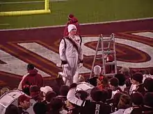 • Previously, two "Renegade" Pep Bands roamed the parking lots surrounding the stadium playing for fans before either meeting back up with the rest of the band before a pre-game performance or playing "call-and-answer" style with the main band (east stands) and the other renegade band (other corner of west stands))