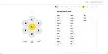 The game presents players with a grid of 7 letters arrayed in a honeycomb structure. The player scores points by using the letters to form words consisting of four or more letters. However, any words proposed by the player must include the letter at the center of the honeycomb. Each letter can be used more than once. Scoring points leads to progressively higher praise for the player's effort, such as "Solid", "Amazing", and "Genius". Each puzzle is guaranteed to have at least one pangram, which awards the player the largest number of points when found.[1][2] If the player finds all of the possible words in a given puzzle, they achieve the title of "Queen Bee".[3]