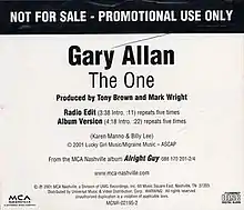 - ↑ Cohoon, Rick. "Gary Allan - "The One"". Allmusic. Retrieved 2008-08-19.