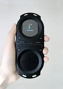 The Pacemaker is a pocket-size DJ system invented by Jonas Norberg.[1] The device features include a 120 GB hard drive, a signal-to-noise ratio of 103, and many basic DJ audio tools, including line out and headphone crossfaders and jacks, bend, pitch, DJ pause, cue points, loop, equalisation, filter, sound effects, and a USB 2.0 connector.[2][3]
