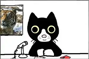 The same exhibit was also covered in the Winnipeg's Uptown magazine entitled, "An Educational Project - By Cats?" The article found the style of Pinky and her gang interesting: "in contrast to standard educational models, The Pinky Show lacks the trappings of authority. Charmingly and amateurishly animated cats earnestly deliver their research with subjectivity. A typical episode might begin: 'So, I was wondering...' No one asks Pinky, a round-eyed, black-faced cat with a white snout, what her credentials are - cats skirt the dehumanizing structure of authority."[10]