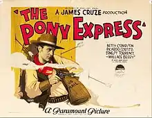 The Pony Express is a 1925 American silent Western film produced by Famous Players–Lasky and distributed by Paramount Pictures.[1] The film was directed by James Cruze and starred his wife, Betty Compson, along with Ricardo Cortez, Wallace Beery, and George Bancroft. Prints of this film survive, and it has been released on DVD.[2][3]