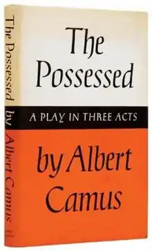 The Possessed (in French Les Possédés) is a three-part play written by Albert Camus in 1959. The piece is a theatrical adaptation of Fyodor Dostoyevsky's 1872 novel The Possessed, later renamed Demons. Camus despised nihilism and viewed Dostoyevsky's work as a prophecy about nihilism's devastating effects. He directed a production of the play at the Théâtre Antoine in 1959,[1] the year before he died, which he financed in part with the money he received with his Nobel Prize.[2] It was a critical success as well as an artistic and technical tour de force: 33 actors, 4 hours long, 7 sets, 24 scenes. The walls could move sideways to reduce the size of each location and the whole stage rotated to allow for immediate set transformations. Camus put the painter and set decorator Mayo, who had already illustrated several of his novels (L'Etranger - 1948 Ed.), in charge of the demanding task of designing these multiple and complex theater sets [3]