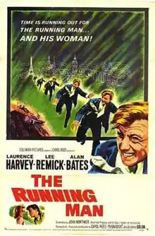 The Running Man is a 1963 British-American neo noir drama film directed by Carol Reed, starring Laurence Harvey as a man who fakes his own death in a glider accident, then runs into trouble when an insurance investigator starts taking a close interest.[1] It was adapted by screenwriter John Mortimer from the 1961 novel The Ballad of the Running Man by Shelley Smith.