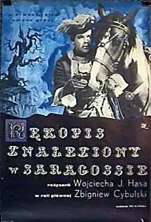 The Saragossa Manuscript (Polish: Rękopis znaleziony w Saragossie, "The Manuscript found in Zaragoza") is a 1965 Polish film directed by Wojciech Has, based on the 1815 novel The Manuscript Found in Saragossa by Jan Potocki. Set primarily in Spain, it tells a frame story containing gothic, picaresque and erotic elements. In a deserted house during the Napoleonic Wars, two officers from opposing sides find a manuscript, which tells the tale of the Spanish officer's grandfather, Alphonso van Worden (Zbigniew Cybulski). Van Worden travelled in the region many years before, being plagued by evil spirits, and meeting such figures as a Qabalist, a sultan and a Romani person, who tell him further stories, many of which intertwine and interrelate with one another.