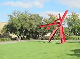 In 2014, the 23-foot (7.0 m) sculpture was relocated from outside the Cantor Arts Center to the lawn between Escondido and Meyer Library.[3]