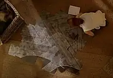 ![]() Dana Scully examines photographs of the writing on the alien spaceship. The episode continued to introduce new aspects to the series' mythology, elements executive producer Frank Spotnitz described as "completely different." | |